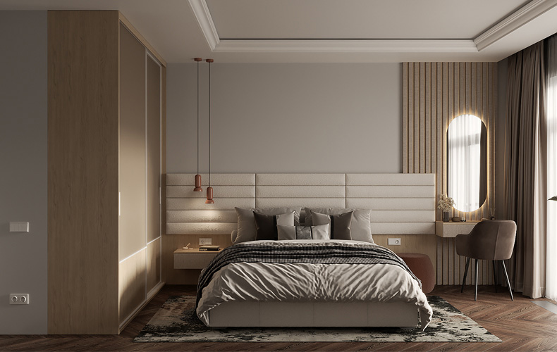 Второе условие современного освещения — теплый свет, цветовая температура 2700–3000K. Холодный «офисный» белый свет делает интерьер неуютным и не помогает расслабиться после трудового дня.