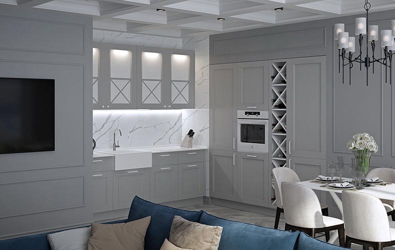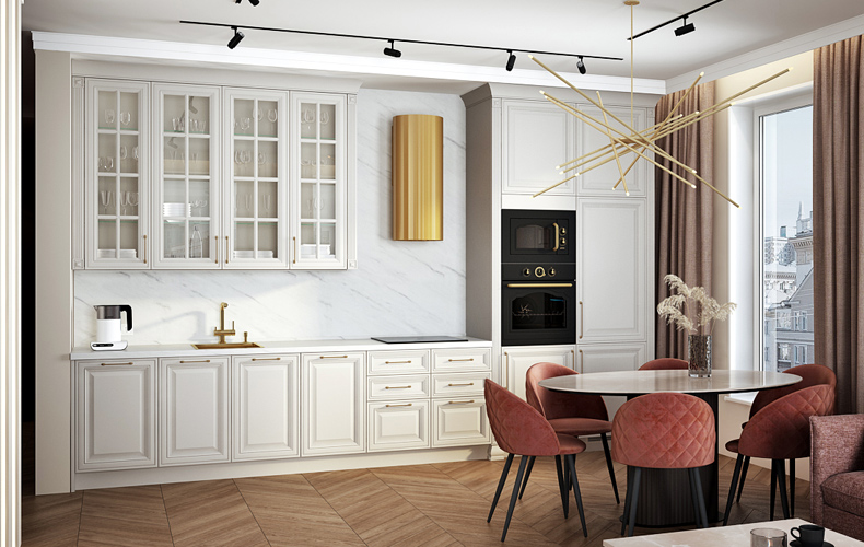 Если вы задумались об интерьере в неоклассическом стиле, приходите на бесплатное проектирование вашей будущей кухни в любой салон «Стильные Кухни и Интерьеры».