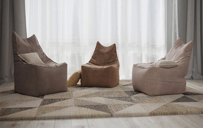 Если площадь гостиной позволяет, дополните диван креслами. В компании «Стильные Кухни и Интерьеры» вы можете подобрать кресла-мешки, модели на ножках и другие варианты. Если у вас маленькая гостиная, кресла можно заменить более компактными изделиями — стульями или табуретами. Подобрать их вы можете на этой странице.