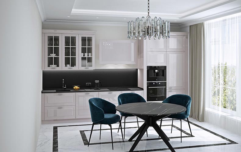 Белый интерьер — светлое, воздушное решение, остающееся в трендах долгие годы. Такая кухня выглядит стильно и дорого, создает приятную атмосферу чистоты. Белый цвет универсален, в нем может быть оформлена любая часть интерьера, от стен до мебели, он одинаково подходит практически ко всем стилям и уместен на кухнях любой площади.