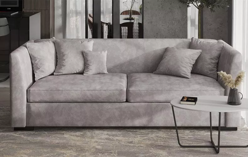 Диван оснащен механизмом трансформации «Пума». Данная конструкция образует спальное место шириной 202см и глубиной 140см при раскладывании сидений дивана. Отделку можно заказать из предлагаемых коллекций тканей на выбор.