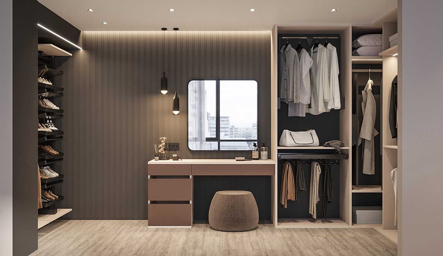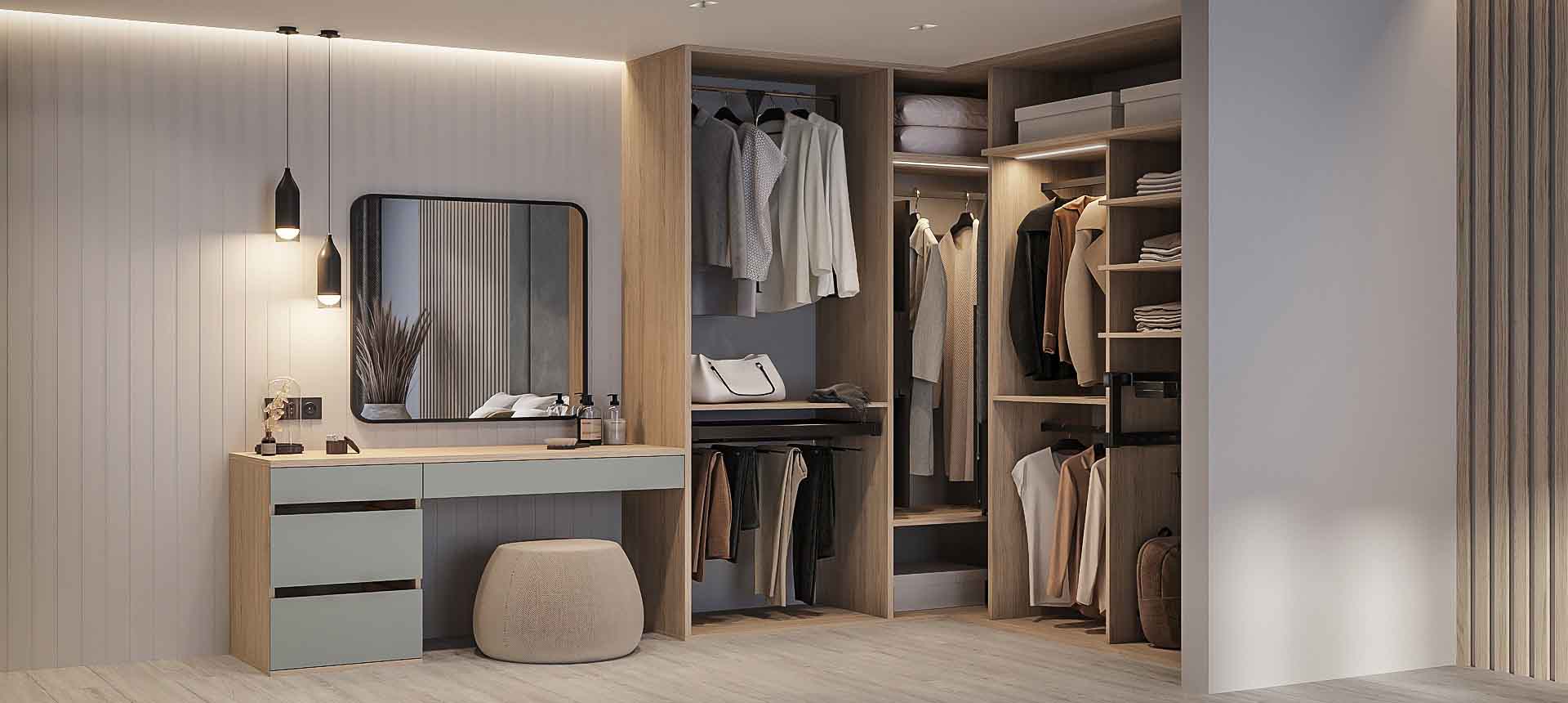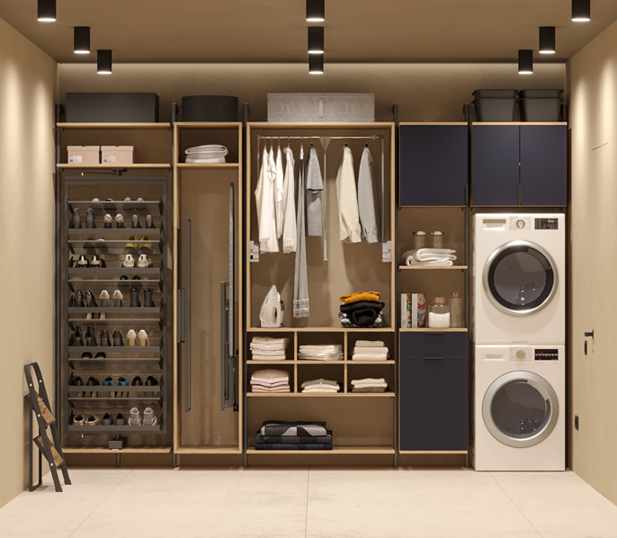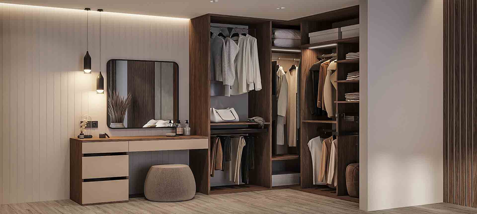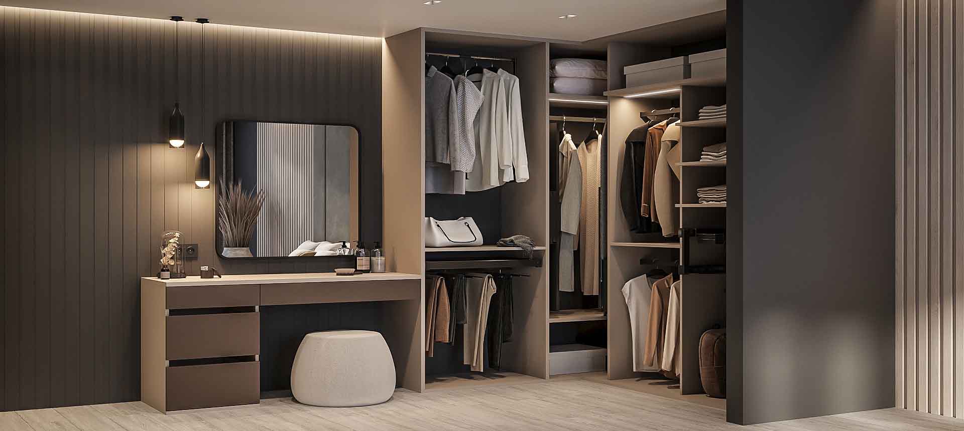 Гардеробная — это удобное пространство для организации хранения и выбора одежды и аксессуаров, где все предметы под рукой и при этом скрыты от посторонних глаз. Но к его созданию нужно подходить продуманно. Компания «Стильные Кухни и Интерьеры» проектирует гардеробные по индивидуальному заказу. Это позволяет подобрать удобное расположение для систем хранения вещей даже в небольшом жилище.