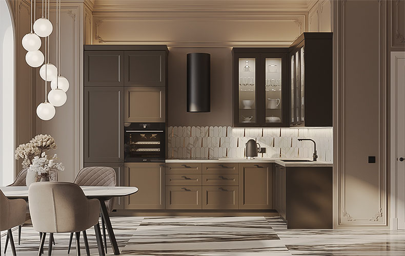 Продукция фабрики выполняется в классических и современных стилях. Вы можете реализовать все свои идеи благодаря разнообразию фасадов и фурнитуры. Классические и современные кухни могут быть дополнены бытовой техникой.