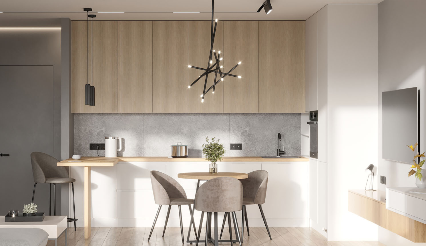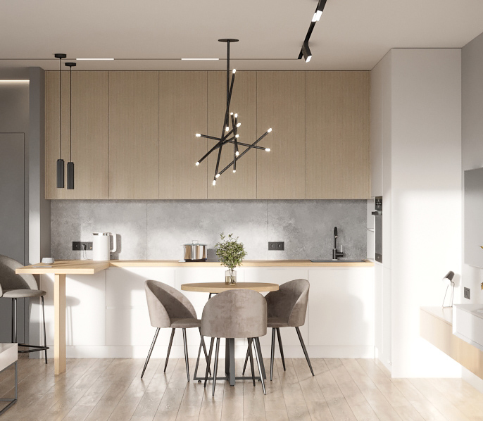 Белая кухня — стильное и светлое решение, подходящее для большинства квартир. Матовые или глянцевые белые фасады подчеркивают атмосферу чистоты и порядка. В такой кухне всегда светло, независимо от естественного освещения и ориентации окон помещения по сторонам света. Белый — базовый цвет, и он отлично дополняется любым оттенком, хорошо сочетается с фактурными поверхностями, например, светлым деревом. Белую мебель легко вписать в интерьер при самых разных вариантах покрытия стен и пола, она благородно смотрится в большинстве популярных архитектурных стилей.