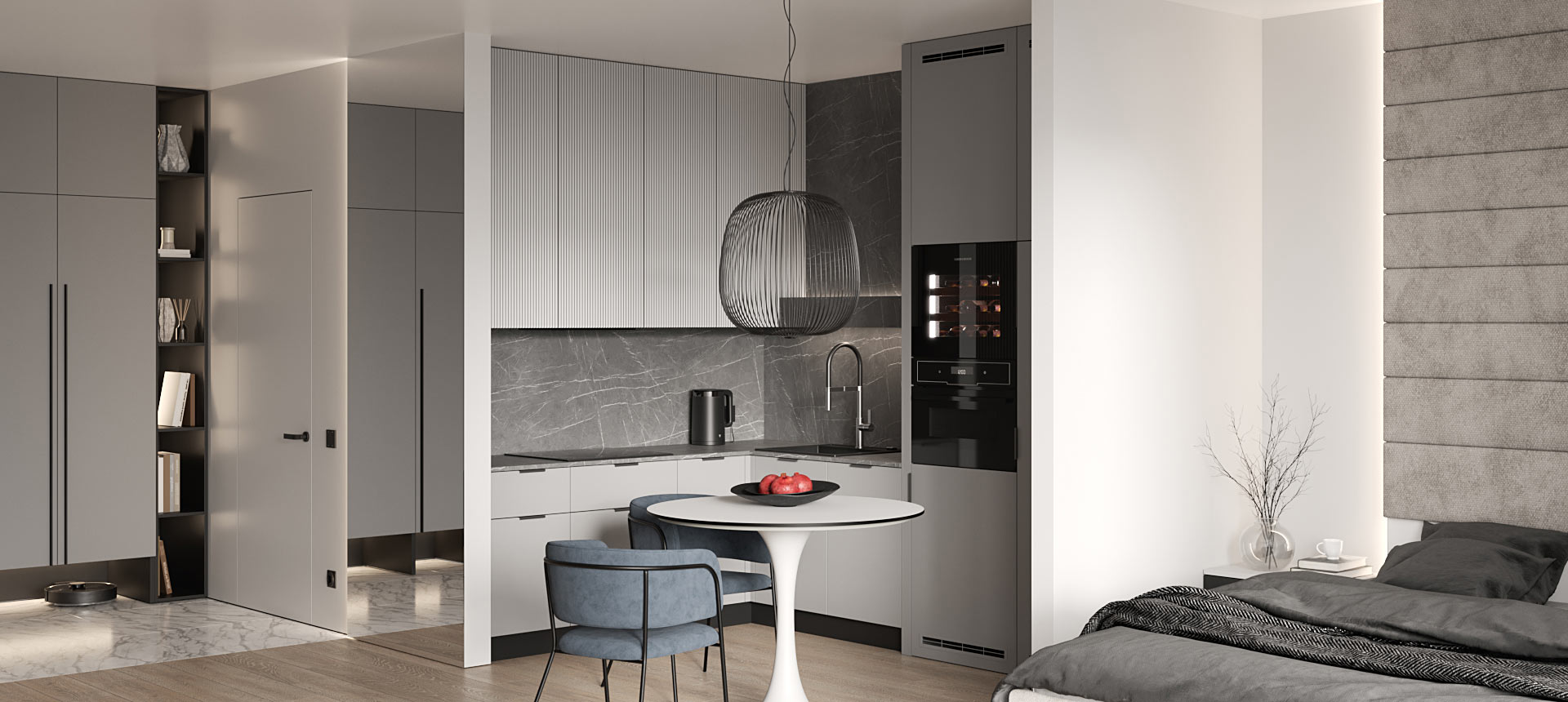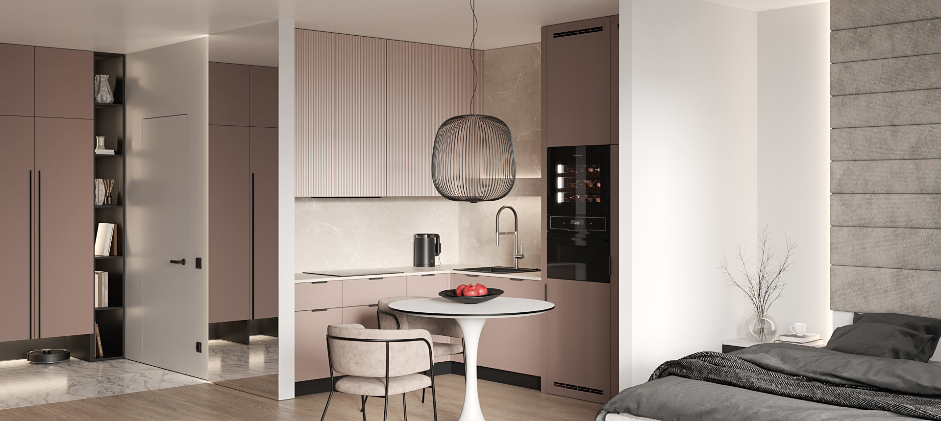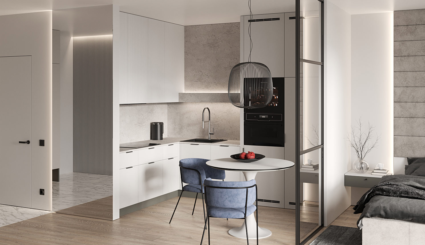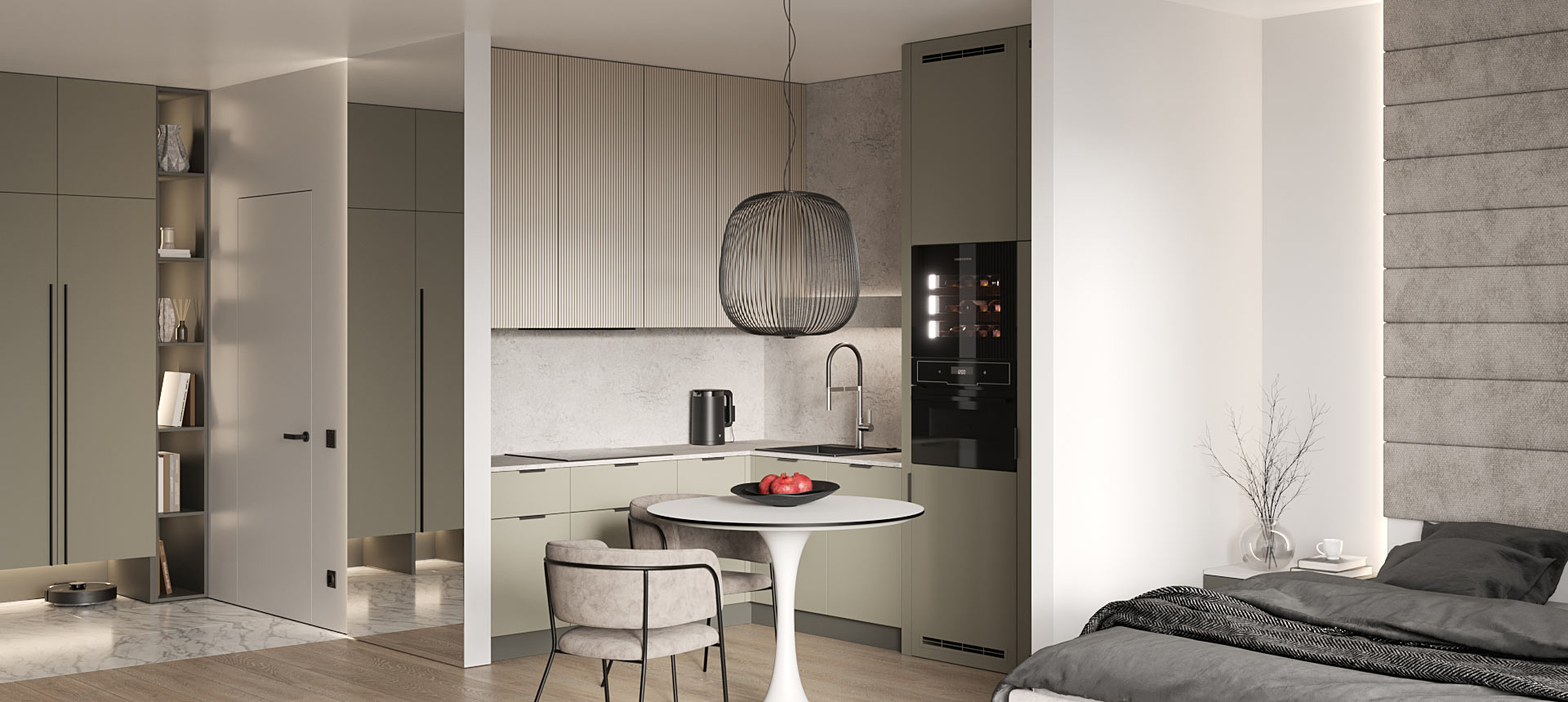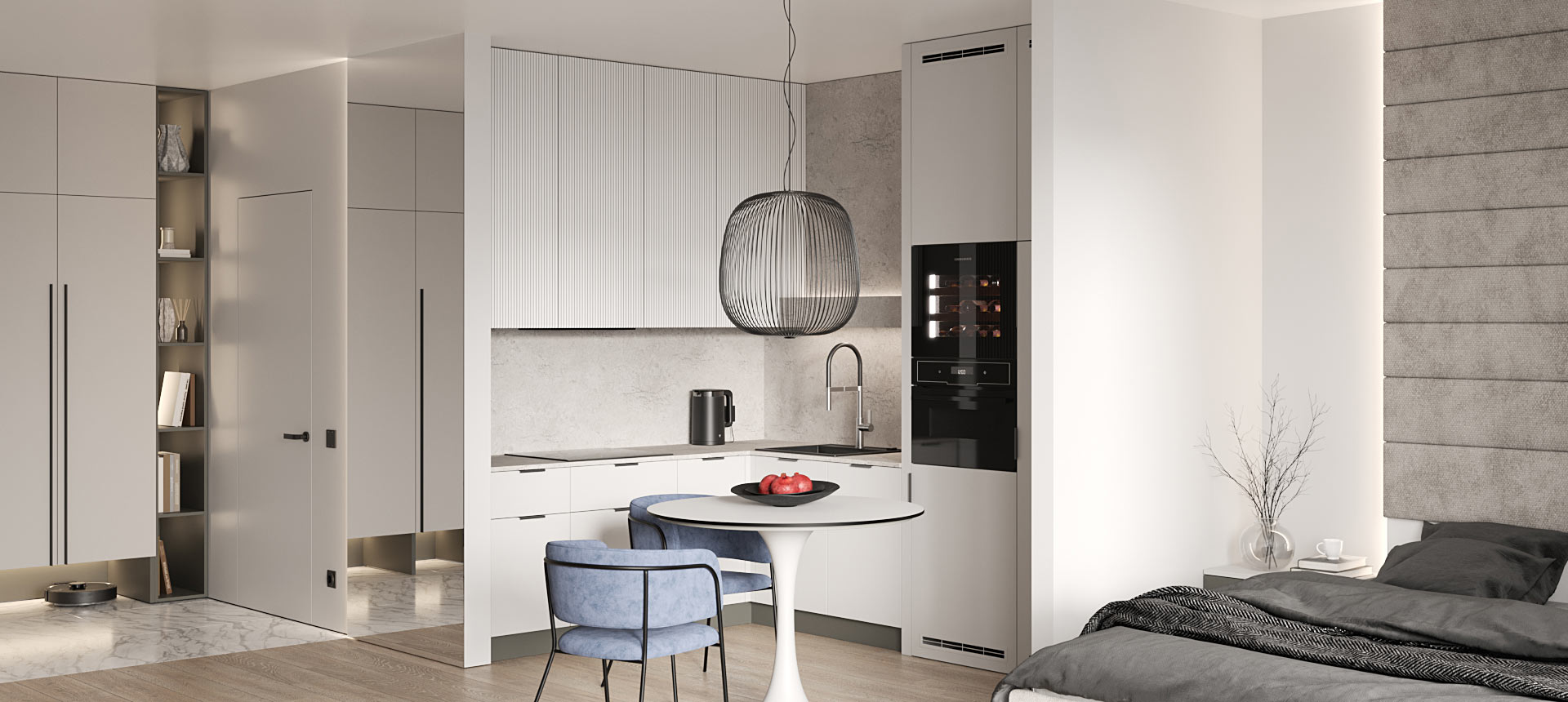Дзен-проект однокомнатной квартиры для любительницы путешествий