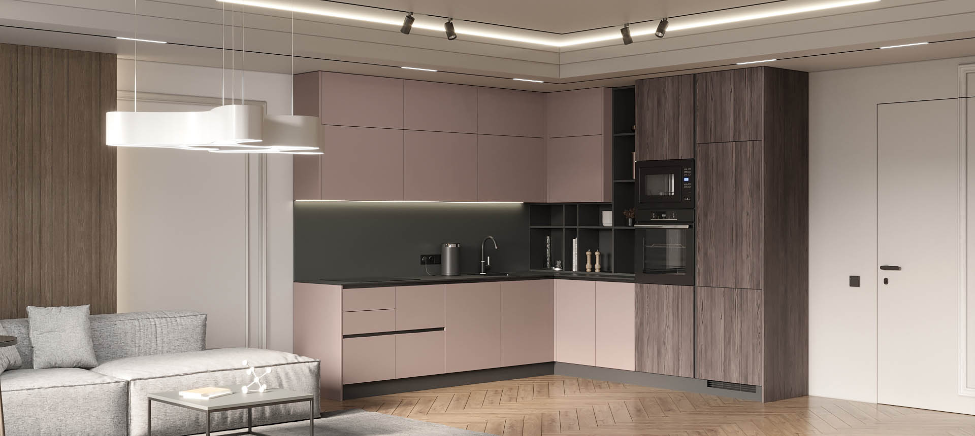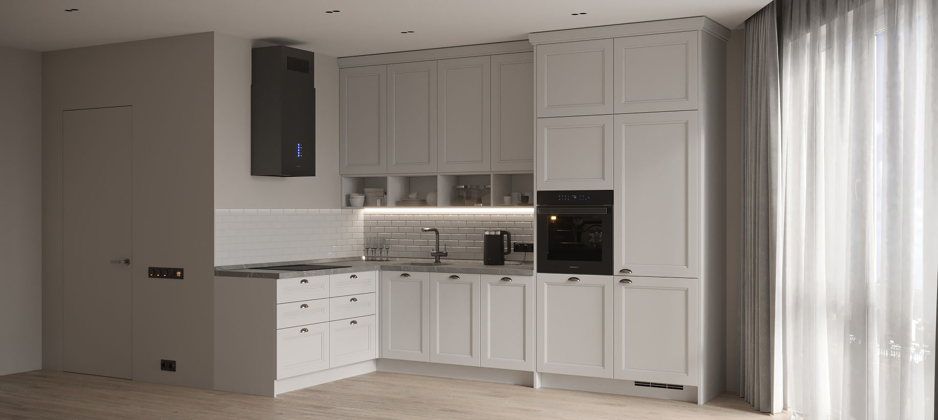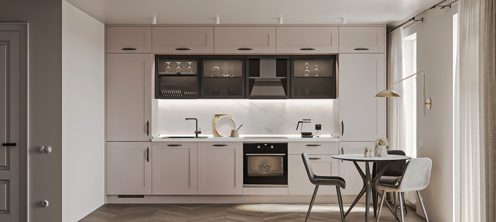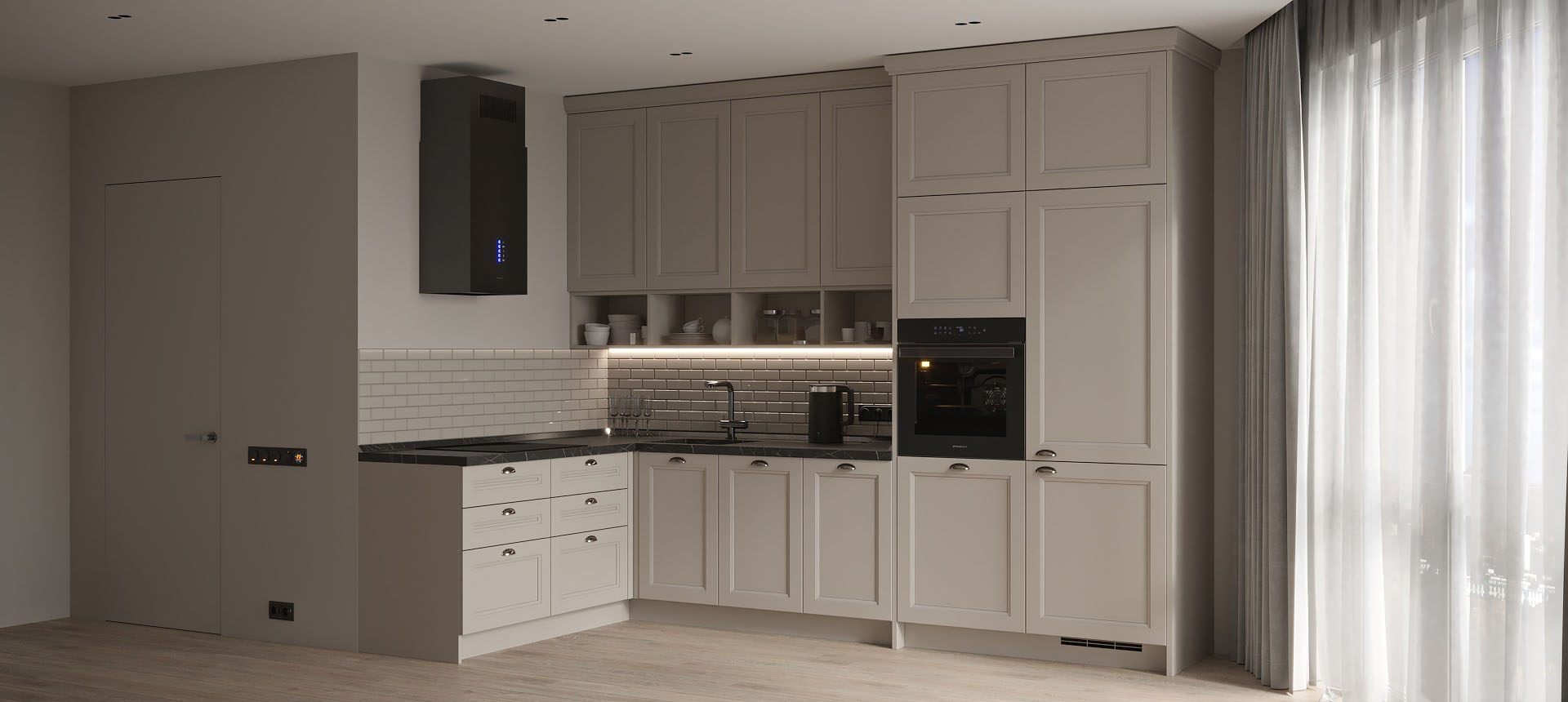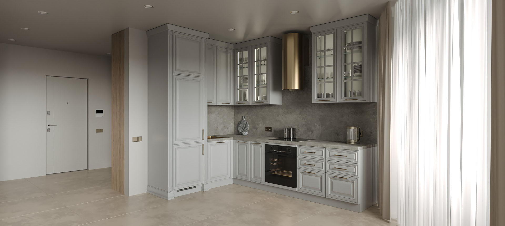 Кухня в стиле лофт и вместительный шкаф для новостройки в Санкт-Петербурге