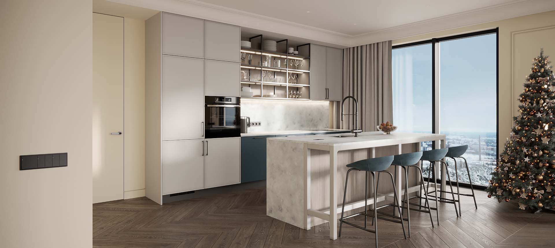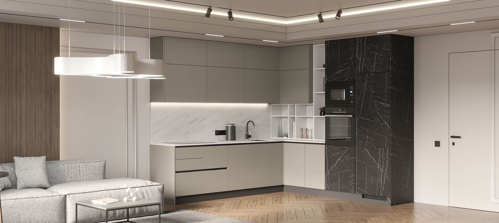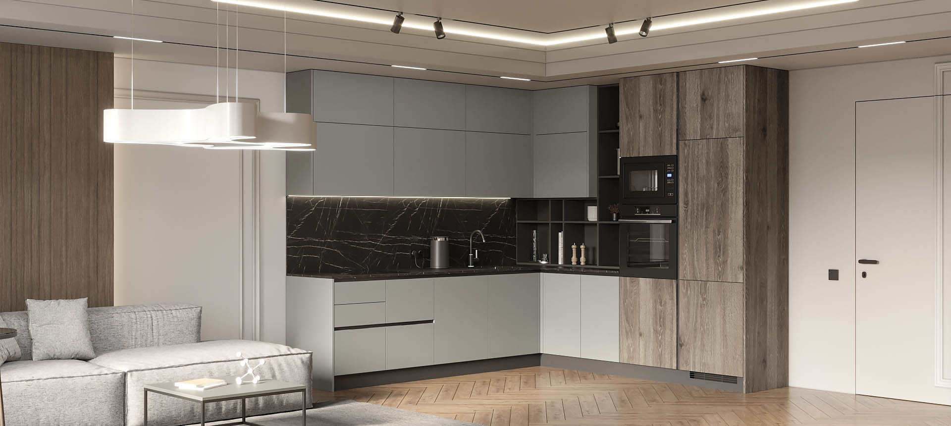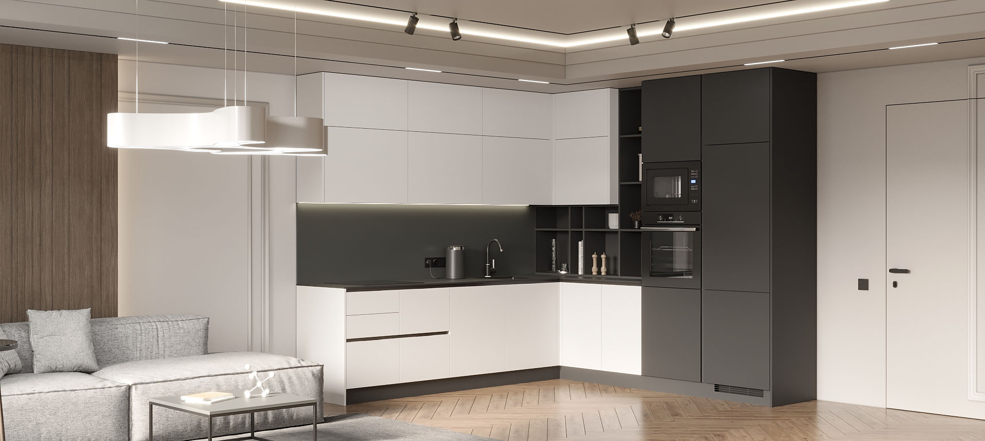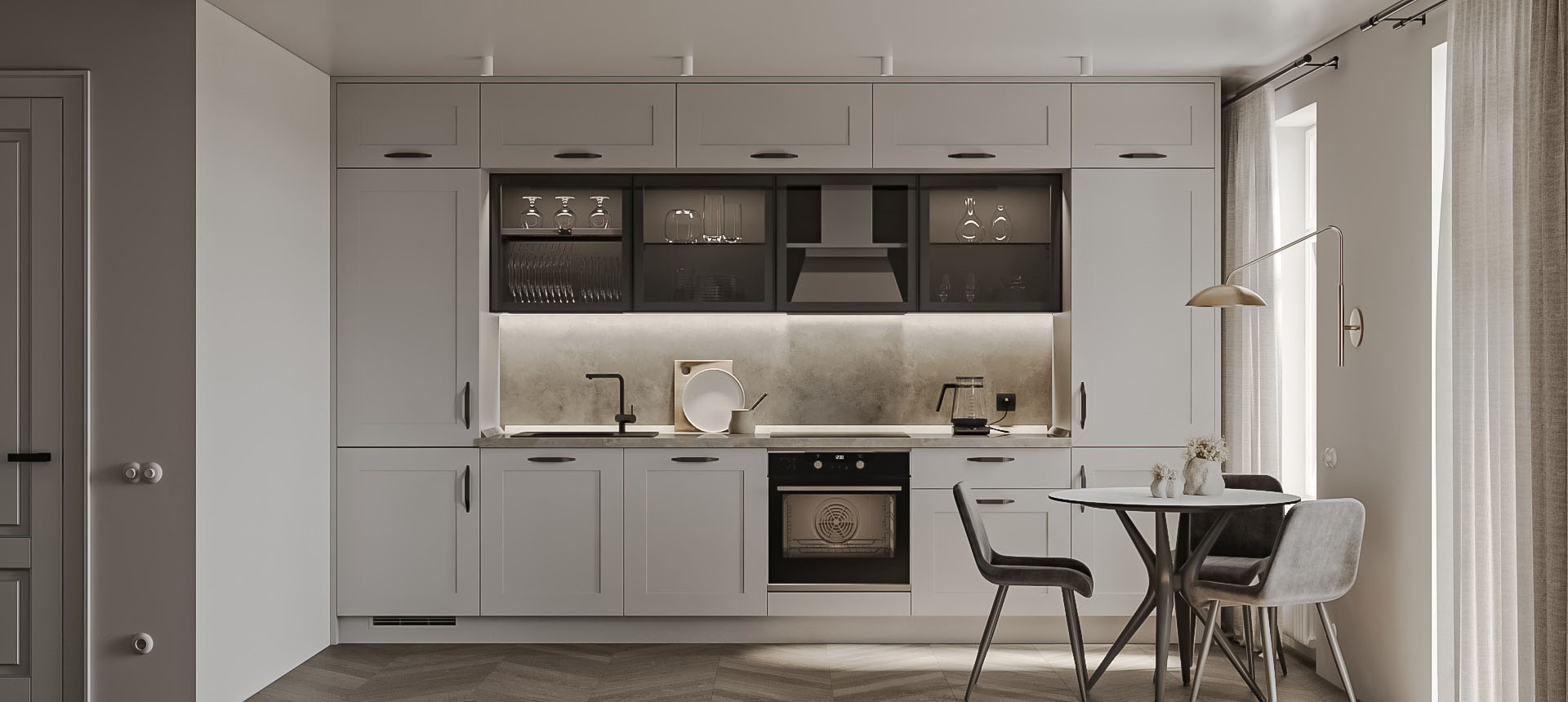 Кухня в стиле лофт и вместительный шкаф для новостройки в Санкт-Петербурге