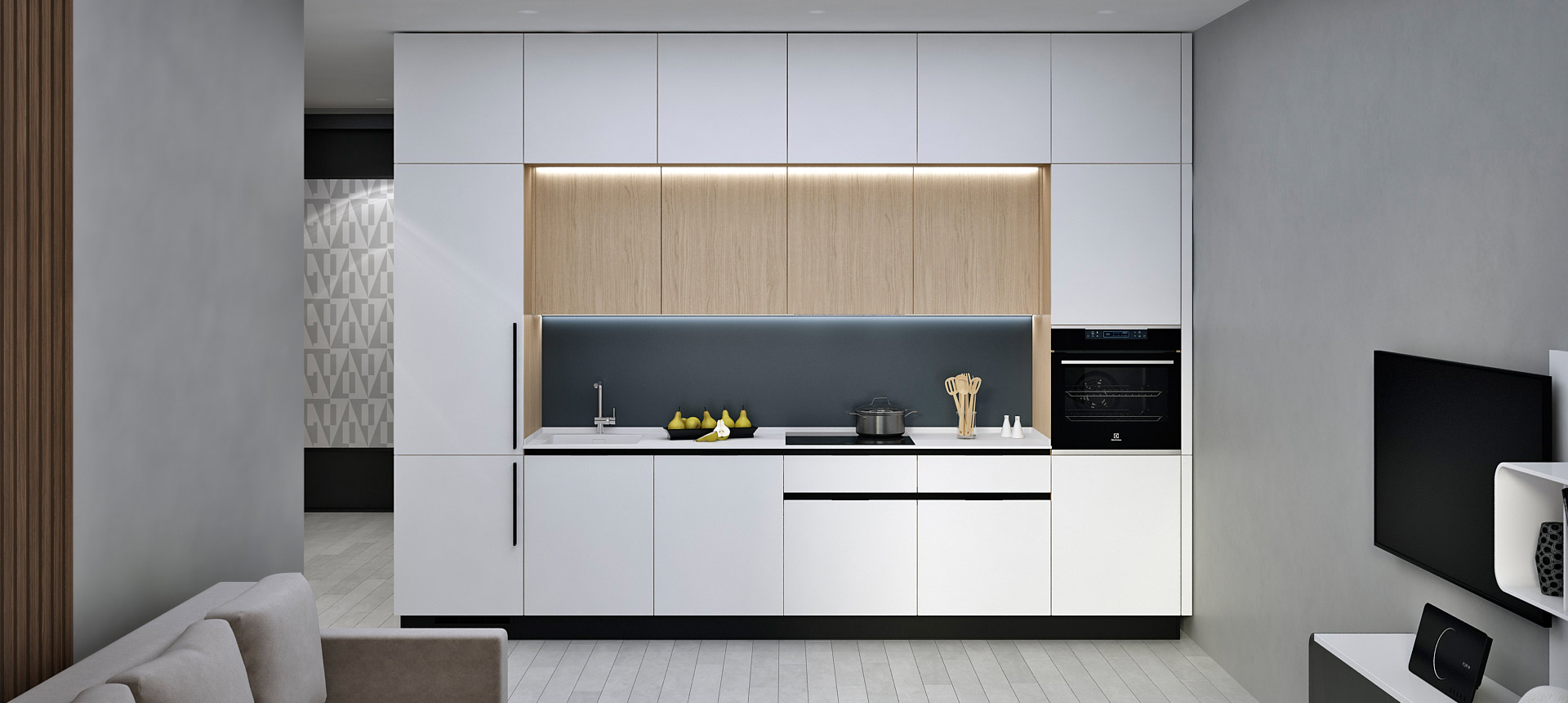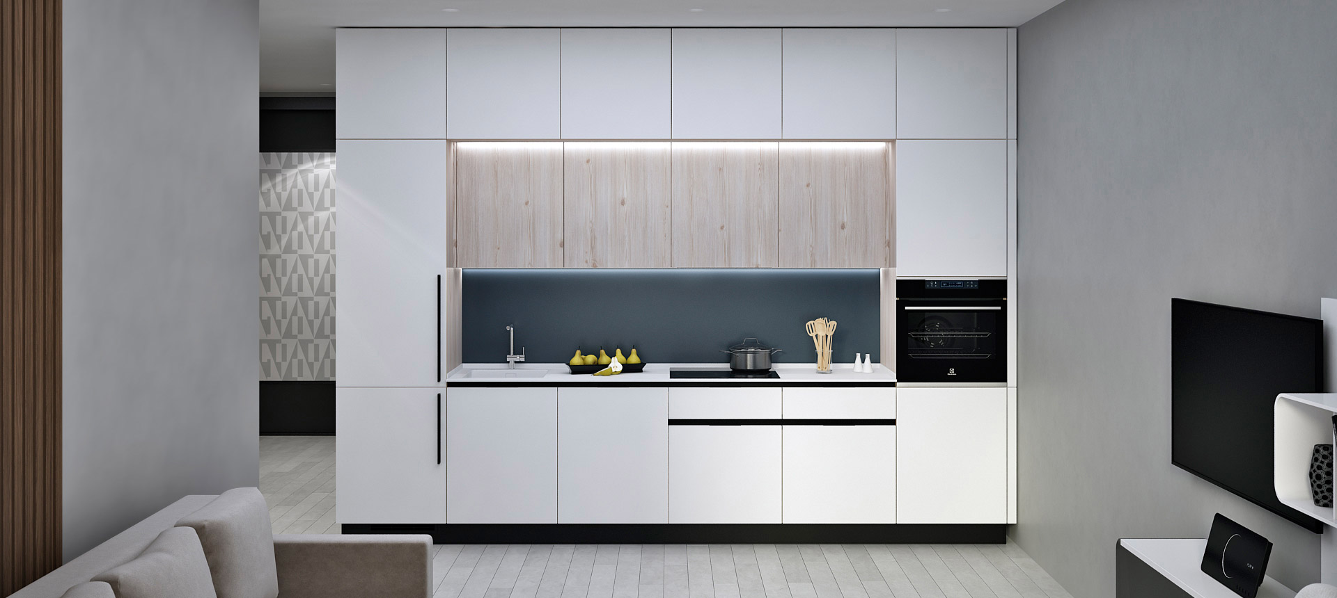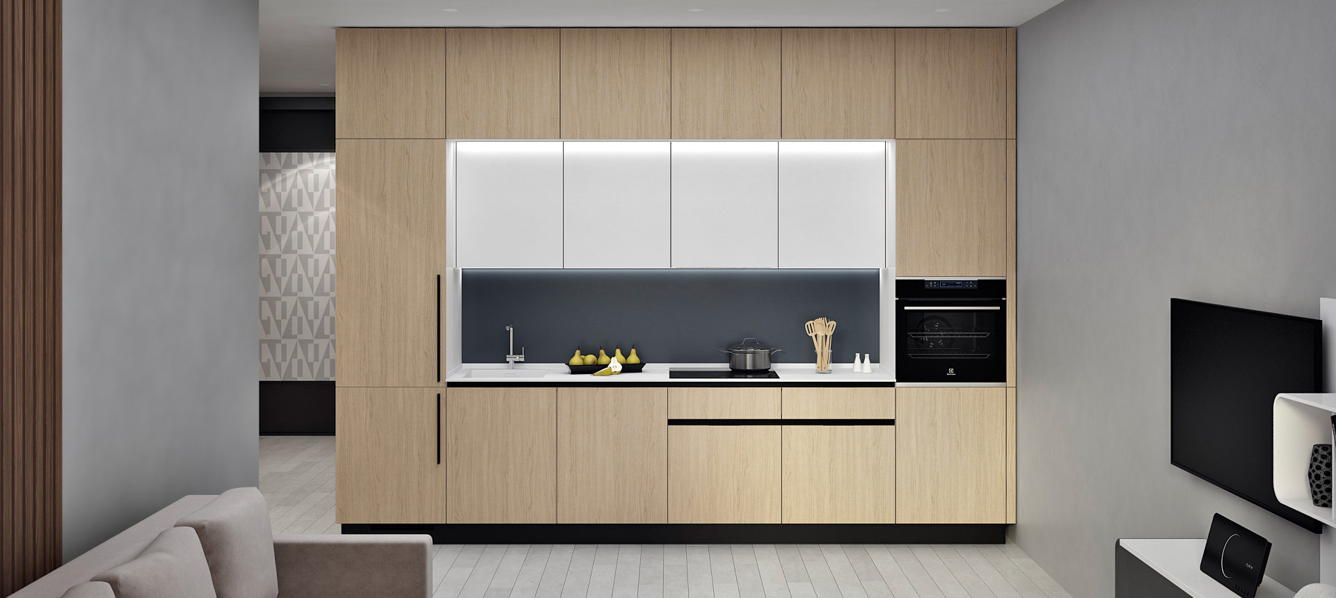 Кухня в стиле лофт и вместительный шкаф для новостройки в Санкт-Петербурге