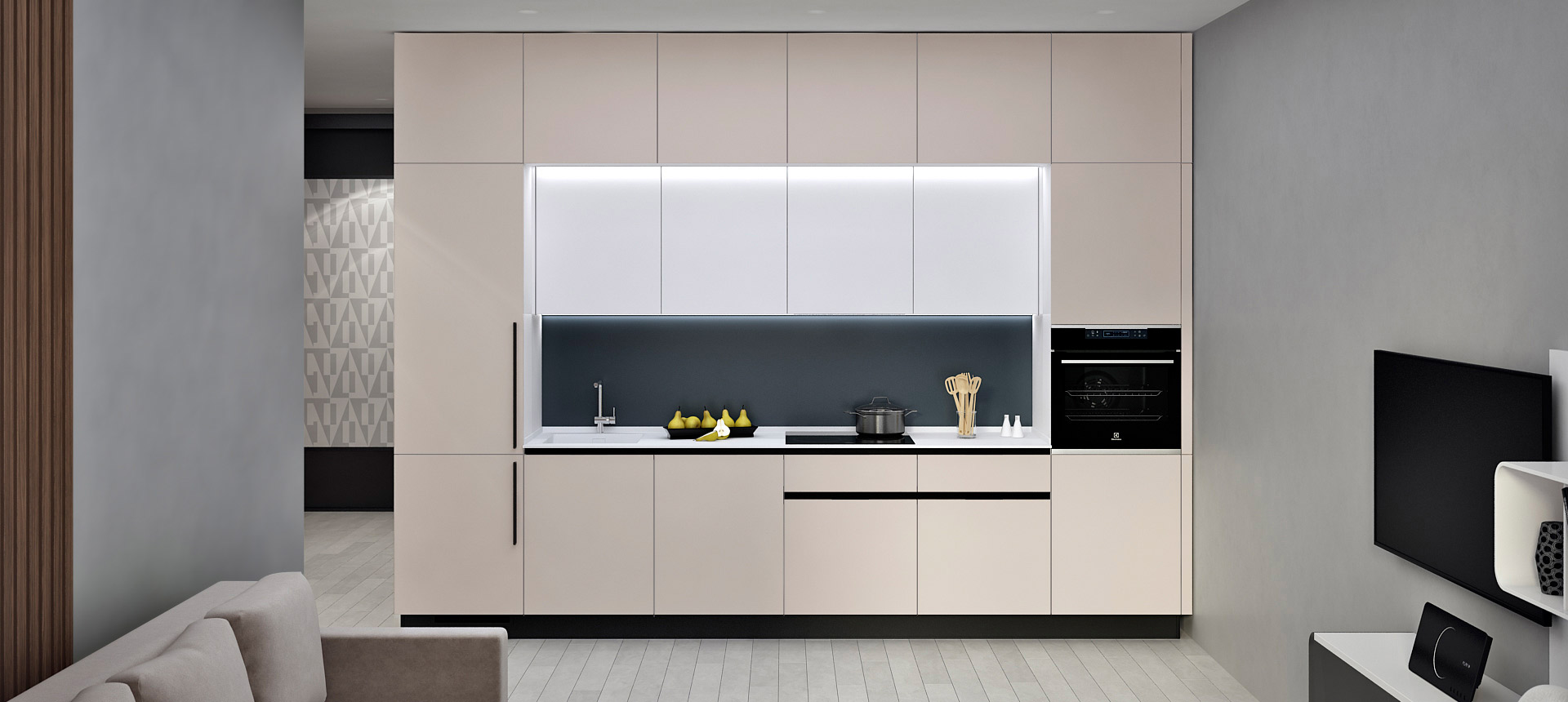 Светлая функциональная квартира в бежевых тонах для семьи из трех человек