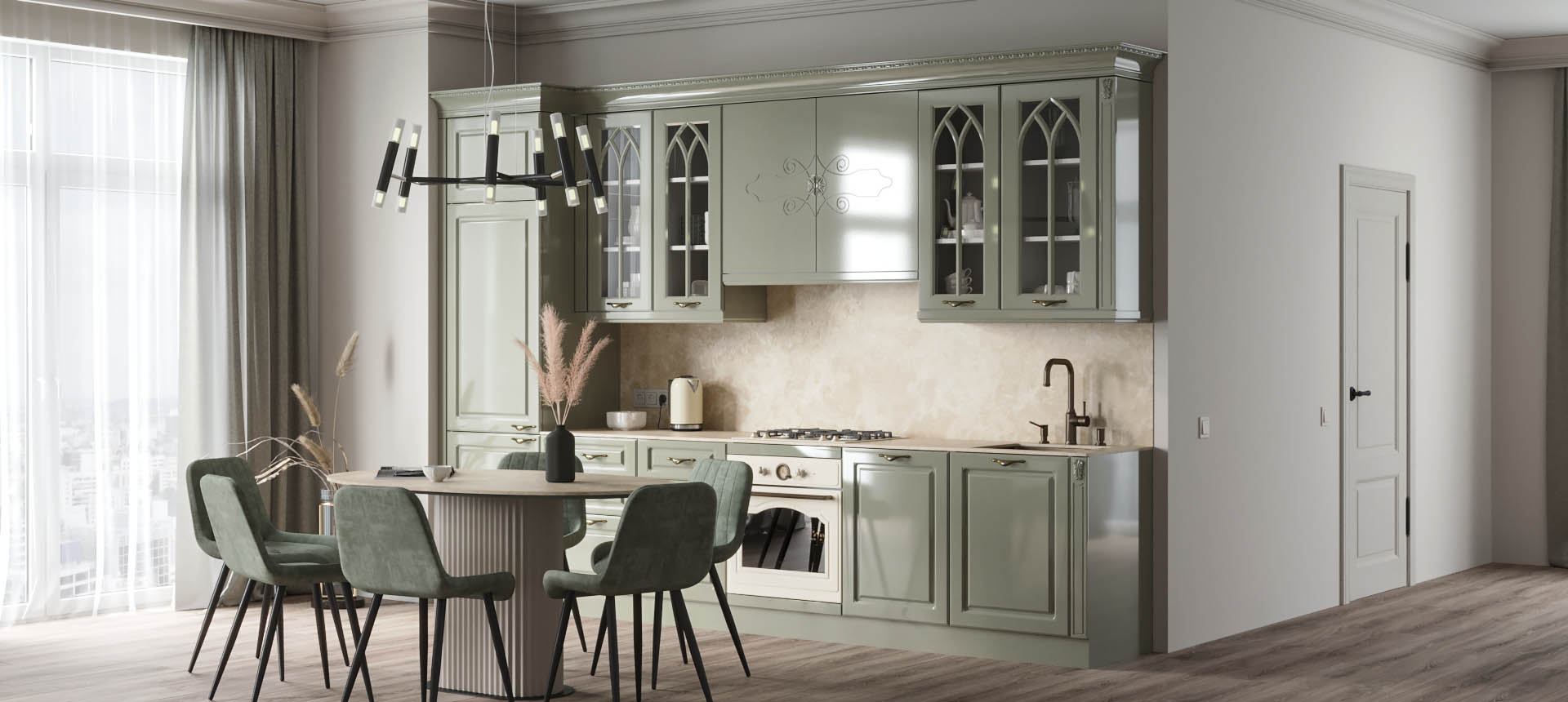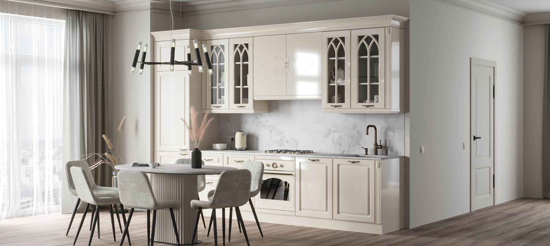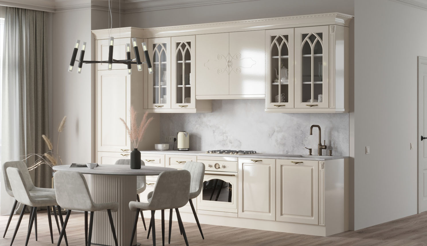 Прямая кухня в классическом стиле