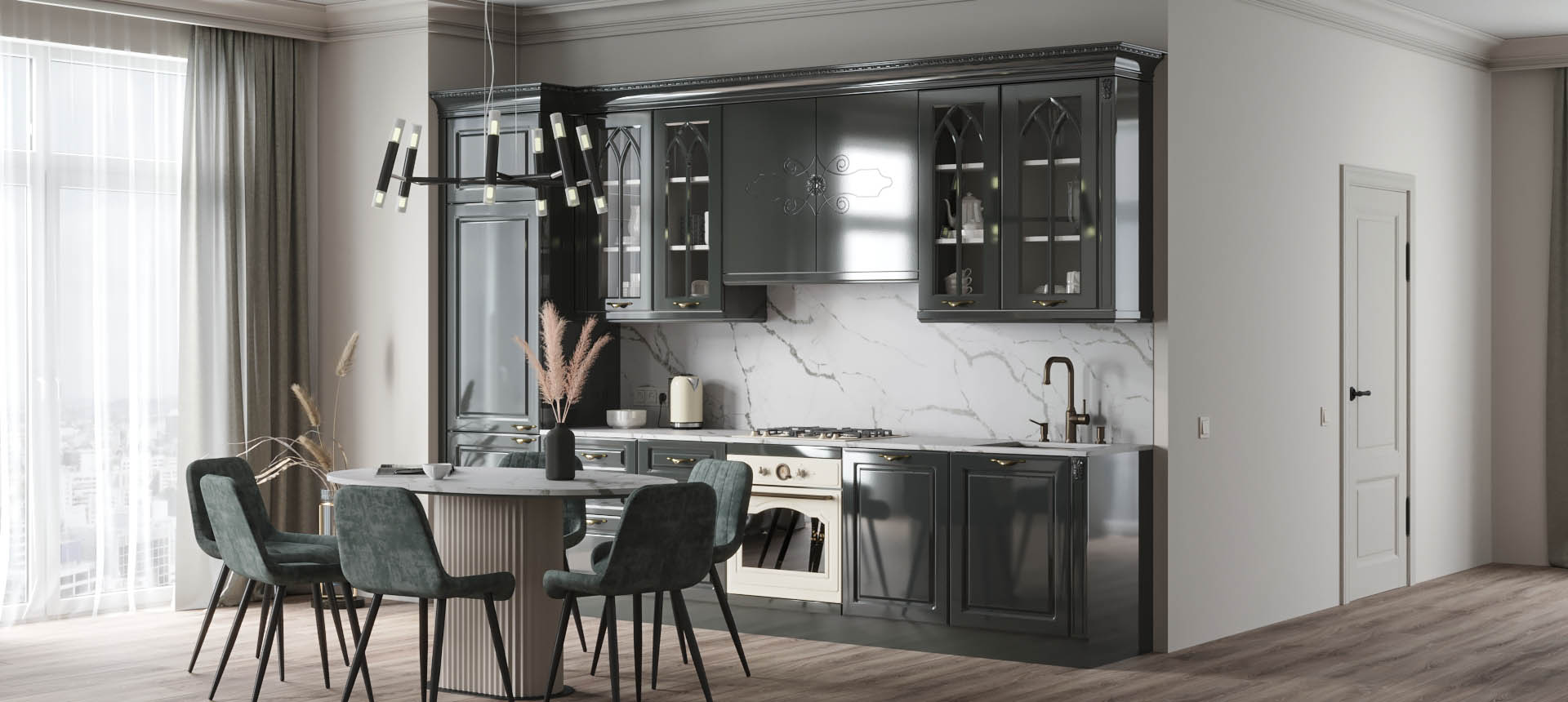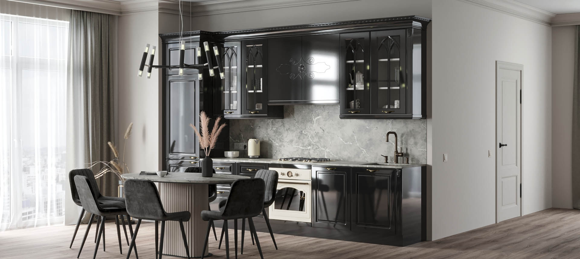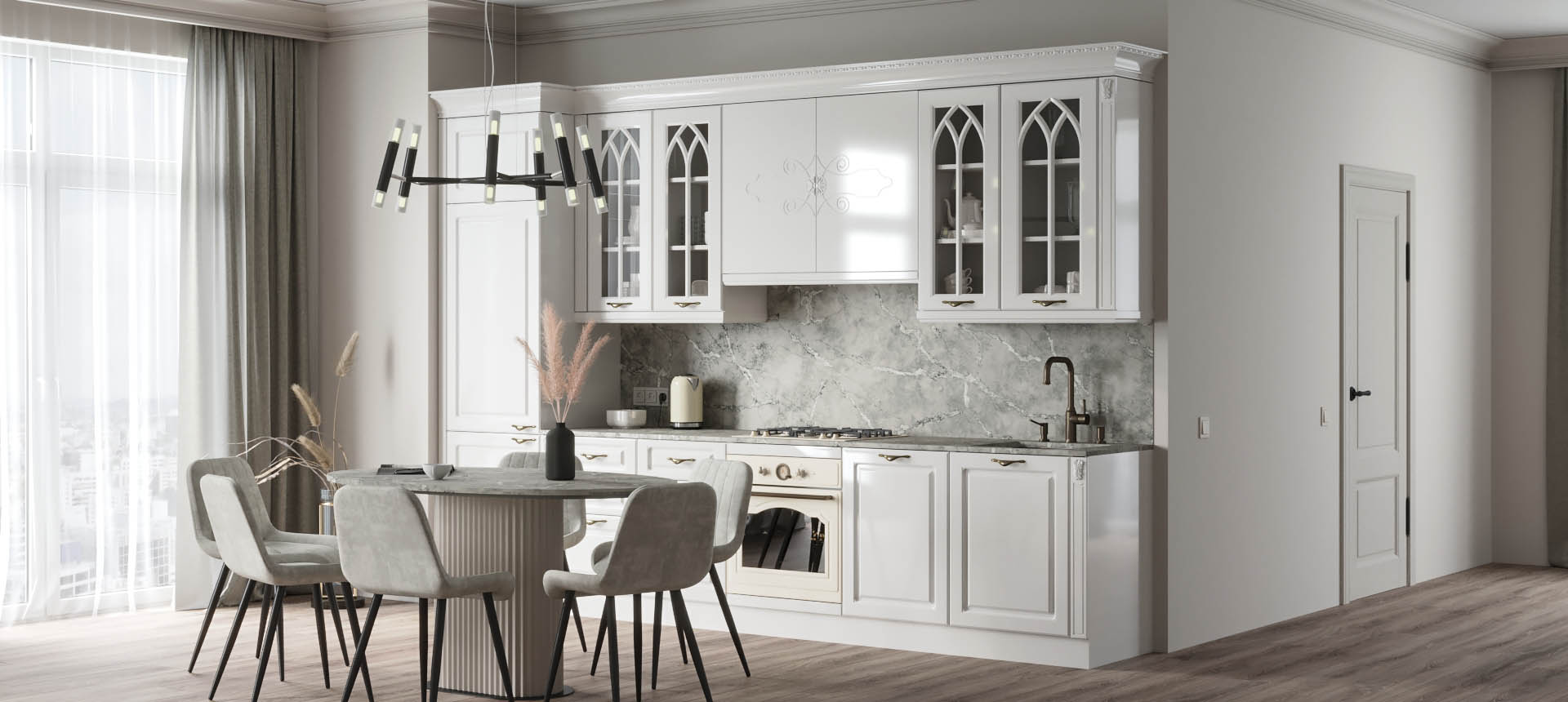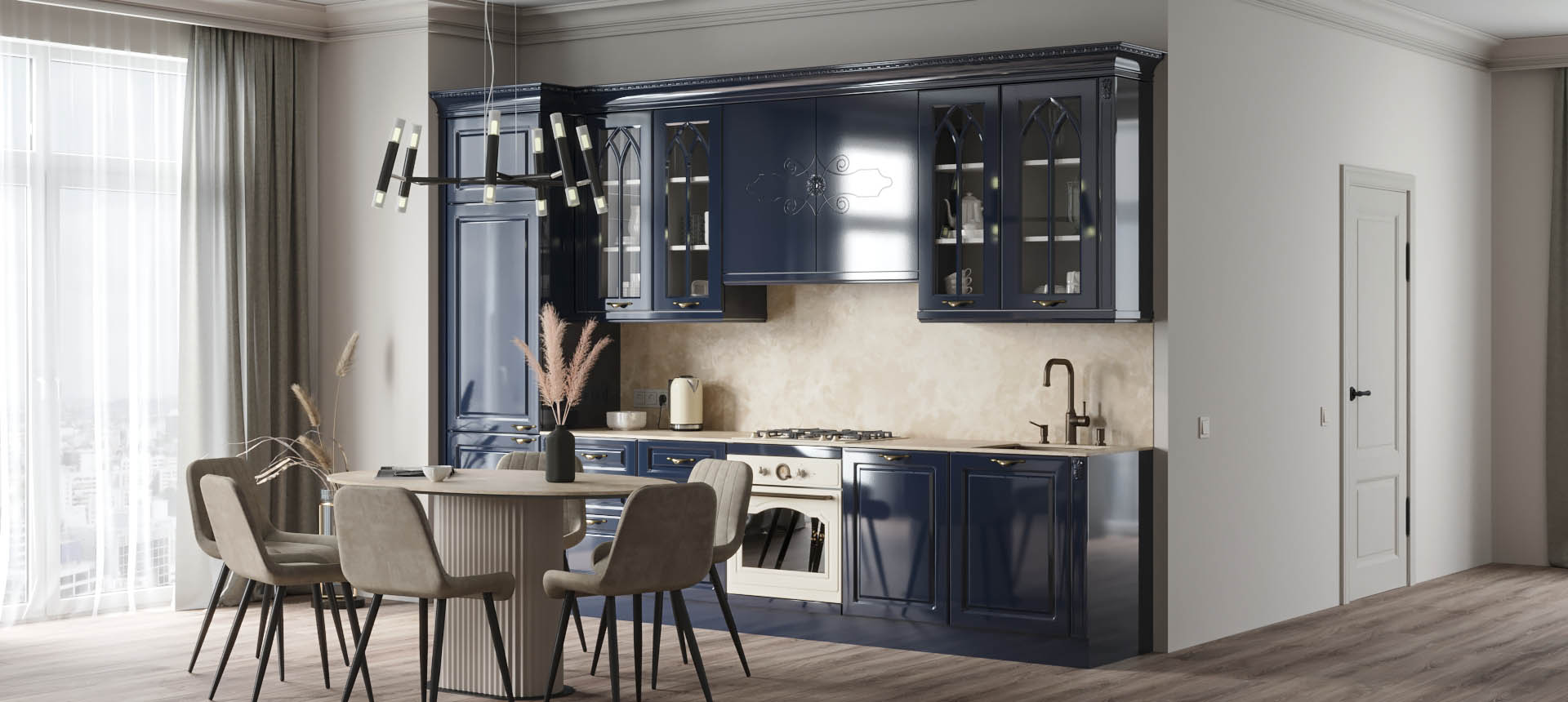 Прямая кухня в классическом стиле