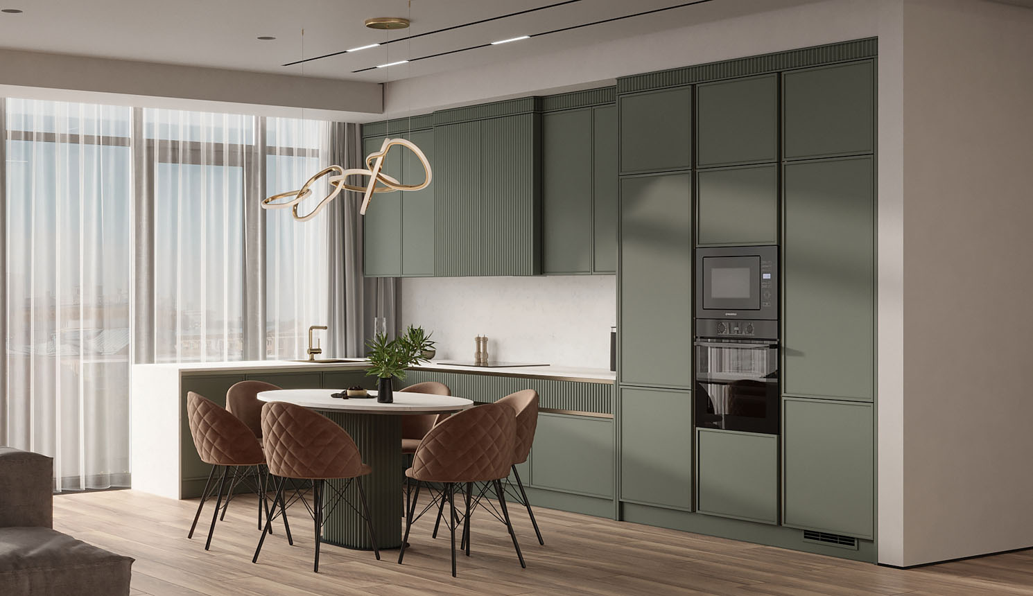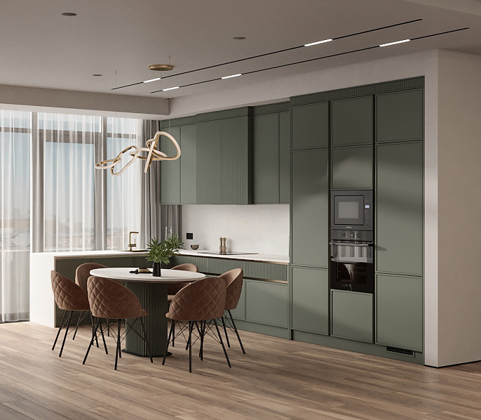 Чтобы дизайнер бесплатно создал проект прямой кухни с учётом ваших пожеланий по планировке, цвету, наполнению.