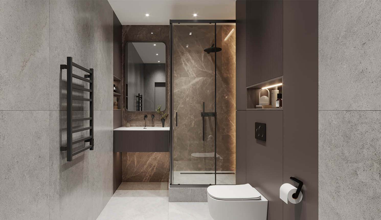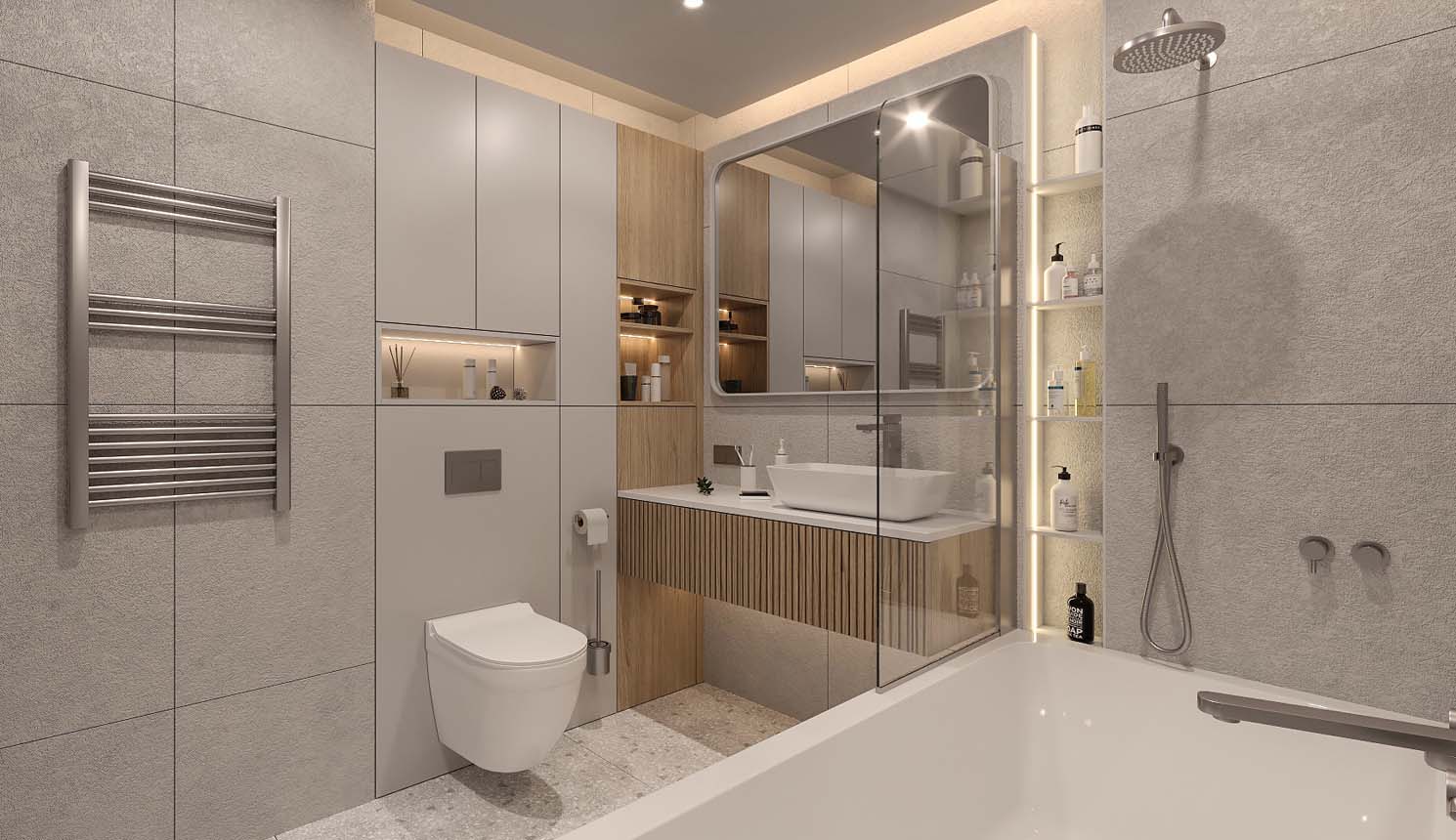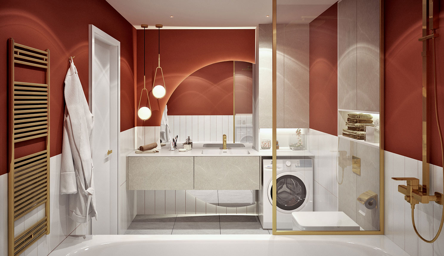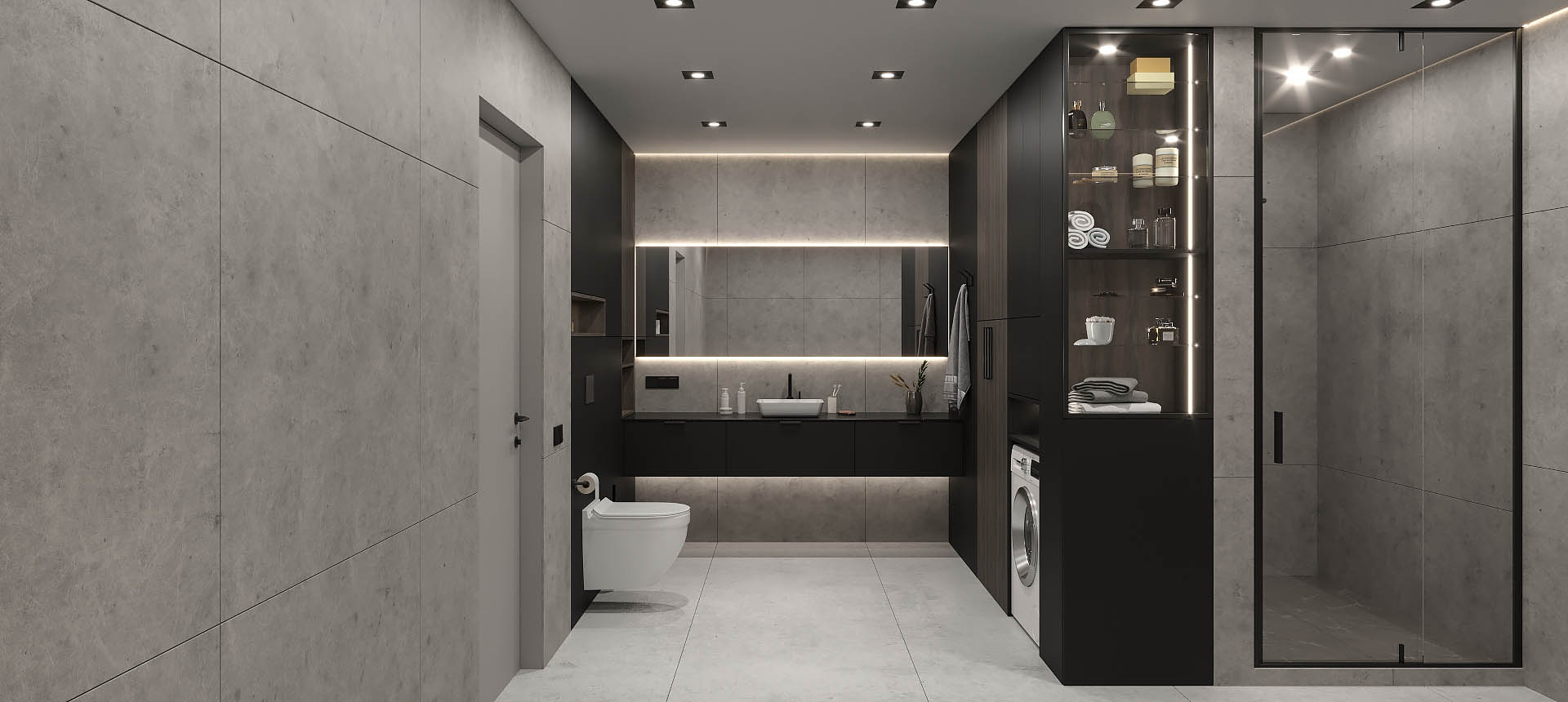 «У меня все проекты с компанией («Стильные Кухни и Интерьеры) были хорошие, но мебелью в ванную комнату я довольна больше всего на свете. Мне сделали тумбу под раковину, две навесные колонки по бокам, зеркало с подсветкой, а также встроенный шкаф напротив. Из-за высоты потолков и размеров шкафов было непросто спроектировать все так, как надо: были опасения, что дверцы ослабнут, что тяжелые дверцы нельзя будет открывать одним легким нажатием. Но в итоге в фасады добавили направляющие, которые их усиливают. И еще удалось сделать эти высокие двери с механизмом push-to-open. У меня не очень большая площадь ванной, поэтому хотелось обойтись без лишних деталей, в том числе и выступающих ручек, которые я бы постоянно задевала»,