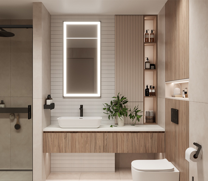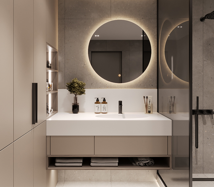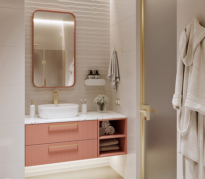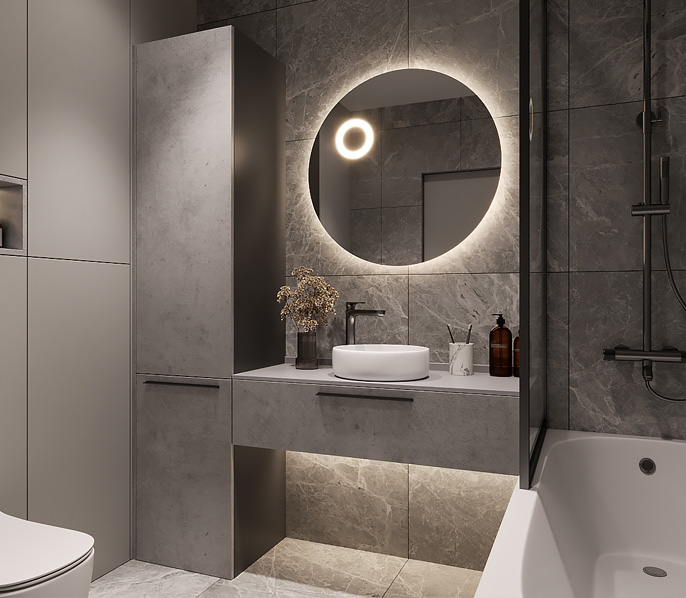 Мы специализируемся на производстве мебели для ванных на заказ, поэтому стоимость изделия будет рассчитана индивидуально.