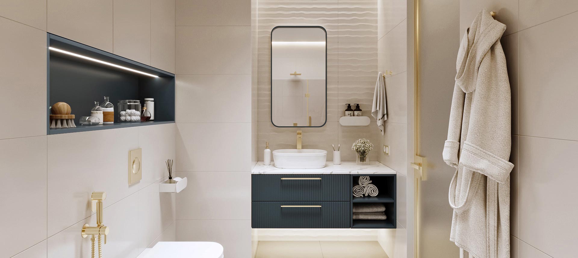 «В попытках сэкономить я хотела сделать мебель для ванной комнаты на заказ, а раковину купить готовую: мне казалось, так получится дешевле. Я даже купила раковину в гипермаркете, правда, расходные материалы к ней надо было покупать отдельно. А в компании «Стильные Кухни и Интерьеры» как раз началась акция на раковины из искусственного камня, которые уже были укомплектованы внутренним клапаном, сифоном, бесплатной установкой и подключением. В итоге, купленную в магазине раковину, мы сдали обратно, не распаковывая, и заказали к нашей тумбе столешницу с интегрированной мойкой из искусственного камня»,