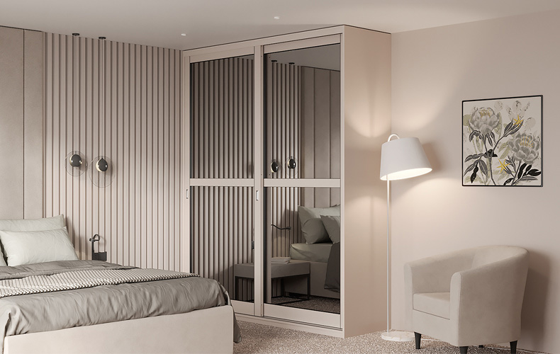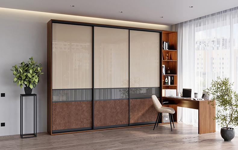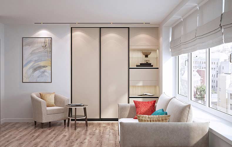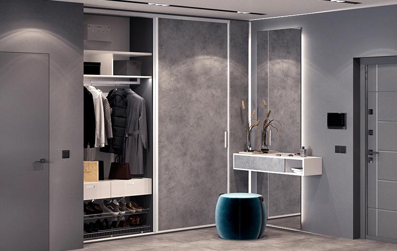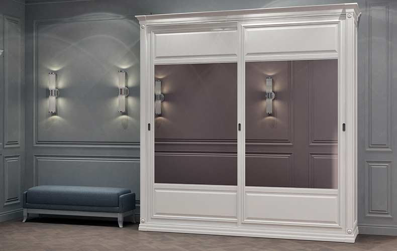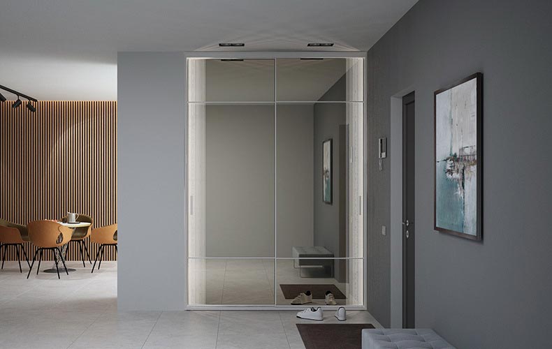 Вместительная и практичная конструкция шкафа-купе идеально подходит для прихожей. Внутри предусмотрены полки для хранения головных уборов, обуви, аксессуаров, а также штанга для верхней одежды. Двери выполнены из стекла, шкаф имеет дополнительную подсветку.