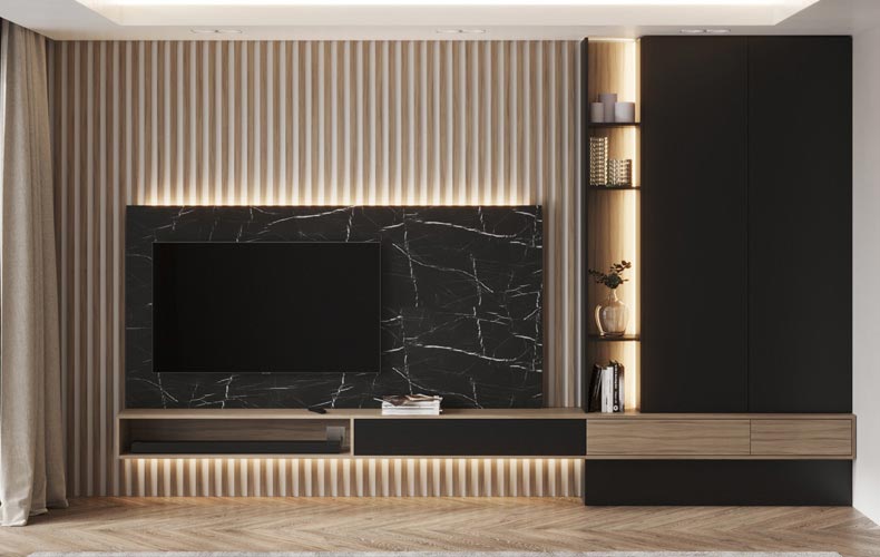В узкой прихожей можно расположить высокий антресольный шкаф с распашными дверями по одной из стен. Такой шкаф в качестве мебели для прихожей необходим для хранения и ежедневного использования верхней сезонной одежды и обуви. Также будет полезна открытая секция с полками, где можно расположить элементы декора, ключницы и другие мелкие принадлежности. Как правило прихожие не имеют окон, поэтому не стоит забывать про подключение локальной подсветки.