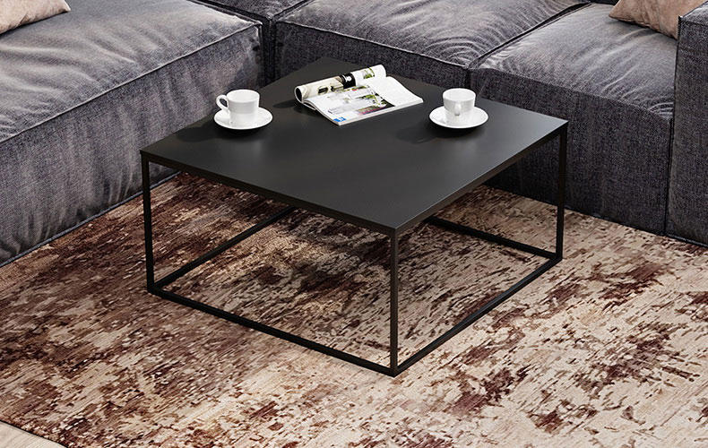 Консольный декоративный журнальный столик имеет прямоугольную конфигурацию и стальной каркас чёрного цвета. Его можно поставить в гостиной или спальне.