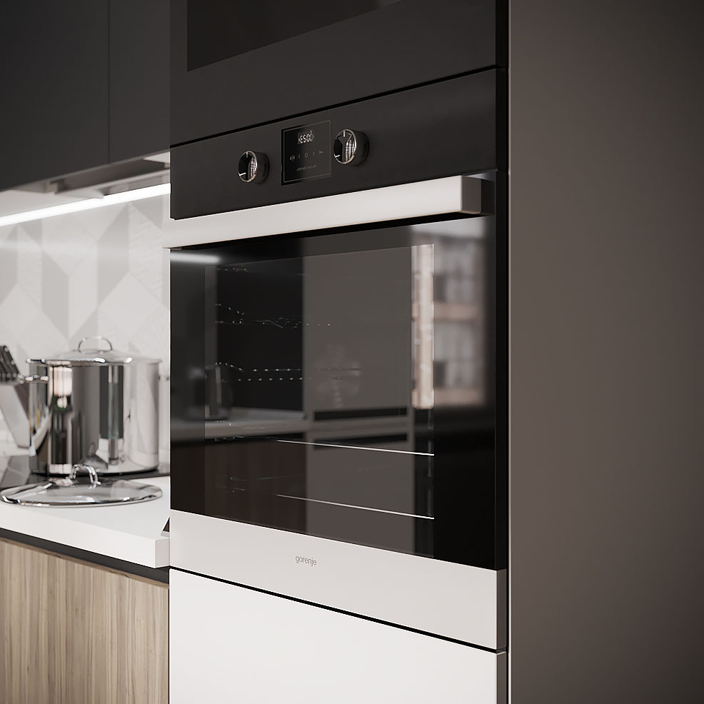 • Красивая кухня с золотыми акцентами в двухкомнатной квартире бизнес-класса