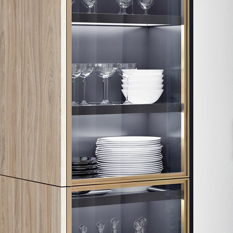 Красивая кухня с золотыми акцентами в двухкомнатной квартире бизнес-класса
