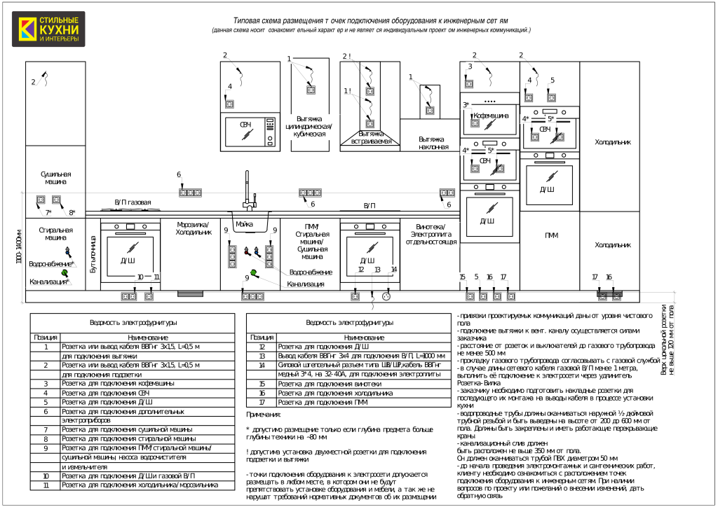 Для оптимального расположения точек подключения бытовой техники, нашими специалистами разработаны рекомендации по подготовке помещения.